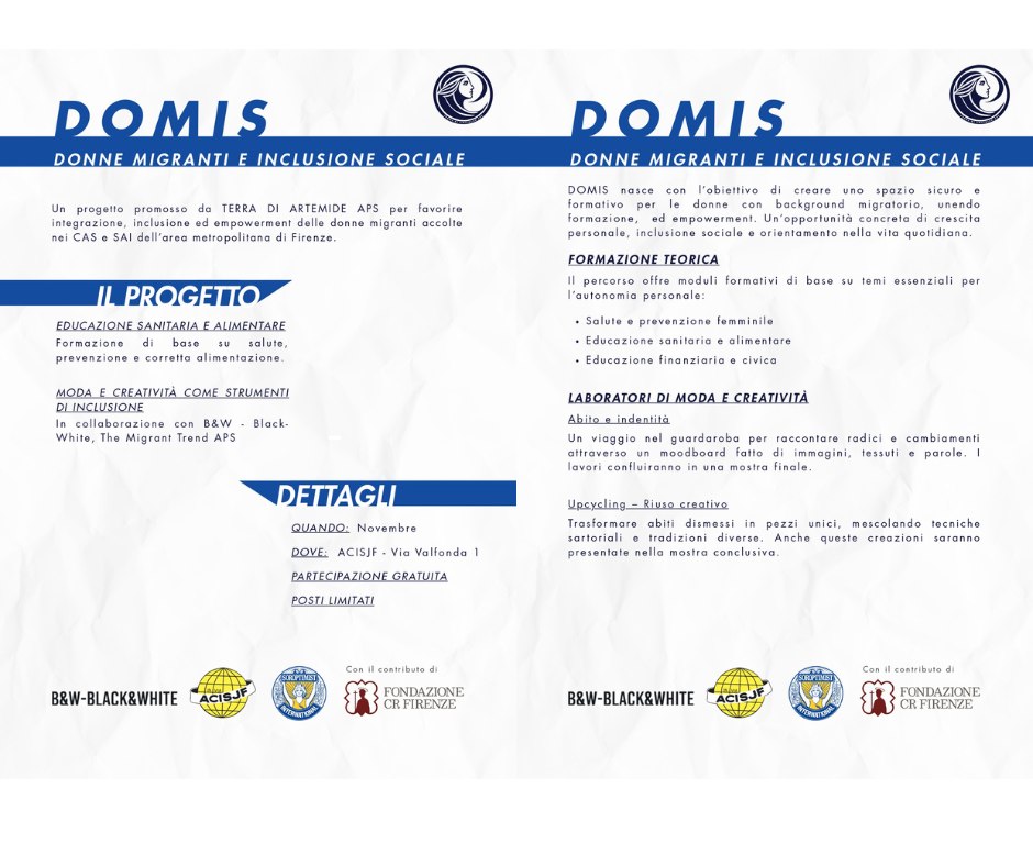 DOMIS nasce per creare uno spazio sicuro e formativo, dove le donne possano conoscersi, imparare e costruire nuove opportunità di vita.
