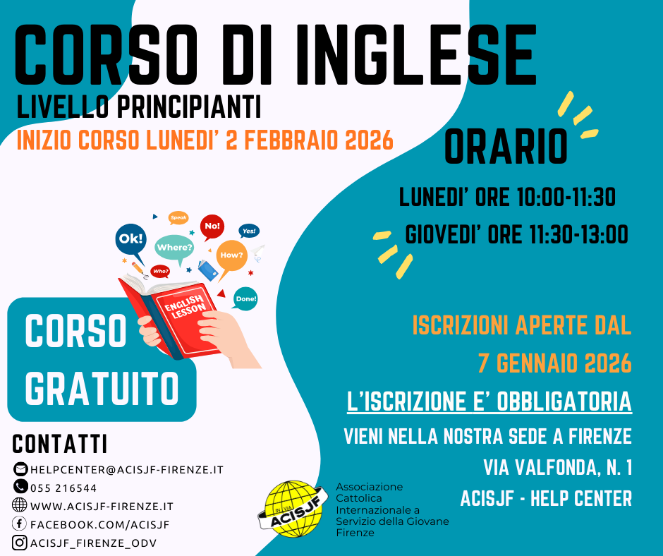 ISCRIZIONI APERTE: a partire da mercoledì 7 gennaio 2026 è possibile registrarsi al corso di INGLESE per principianti.