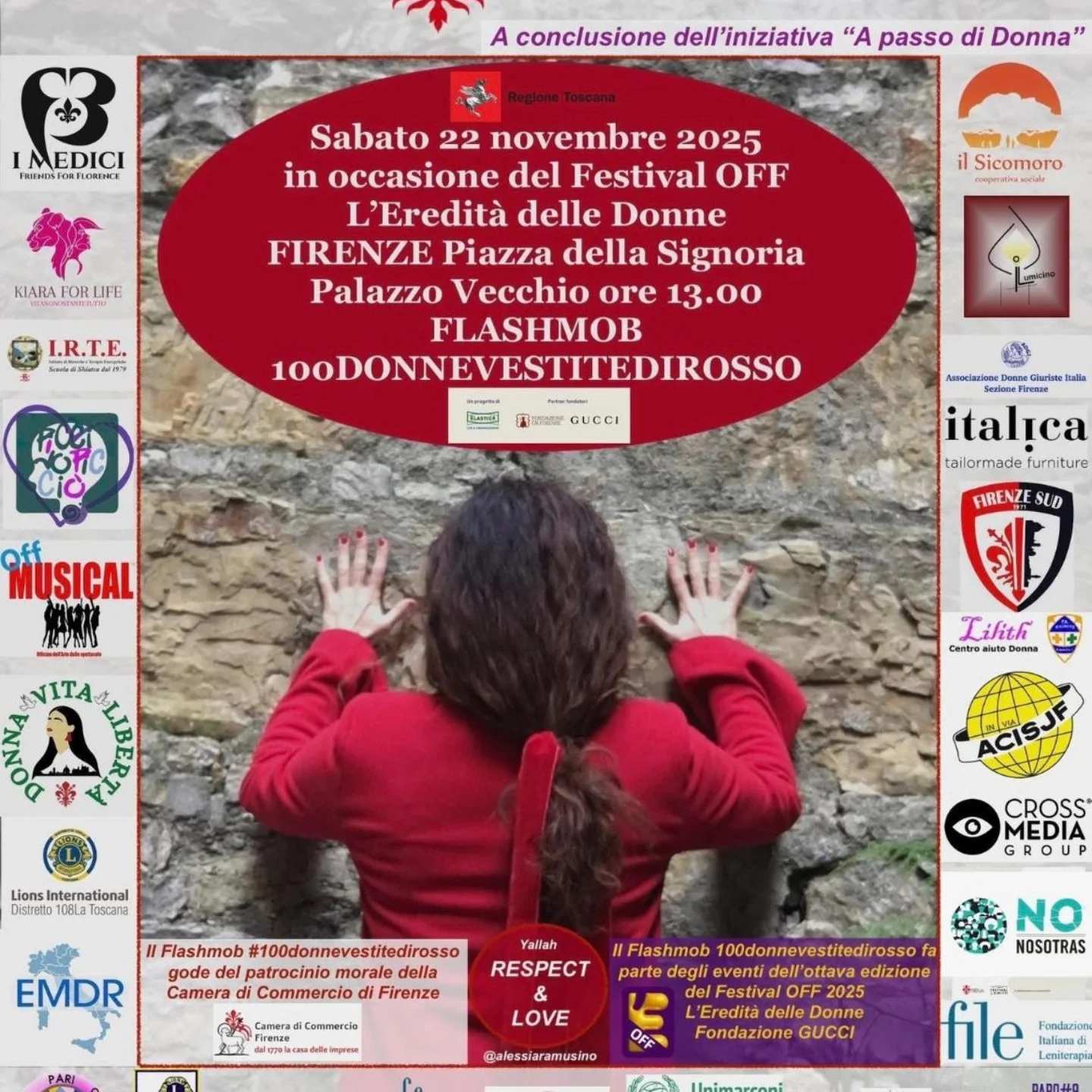 A seguire, il #flashmob delle #100donnevestitedirosso, evento del calendario OFF de L’Eredità delle Donne.